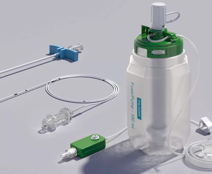FuserPump brūču infiltrācijas pumpis ar stingru virsbūvi, nesaspiežams, triecienizturīgs. Ar iespēju izvēlēties dozas nepārtraukto ātrumu (3, 5 vai 8 ml/h), maksimālais uzpildes tilpums ir 350 ml.